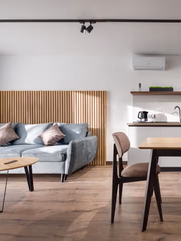 Такий формат гарантує вам сервіс першокласного готелю та комфорт власного дому. У кожному номері є кухня, диван, пральна машина та багато інших бонусів.